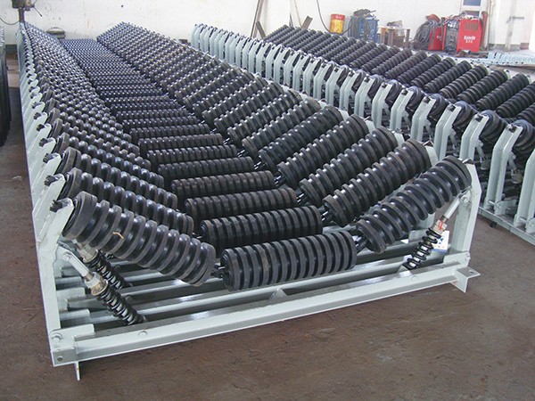 (4)緩沖托輥有彈簧板型托輥、緩沖圈型托輥、強力緩沖型托輥、可調彈力型托輥、吊掛型托輥等;